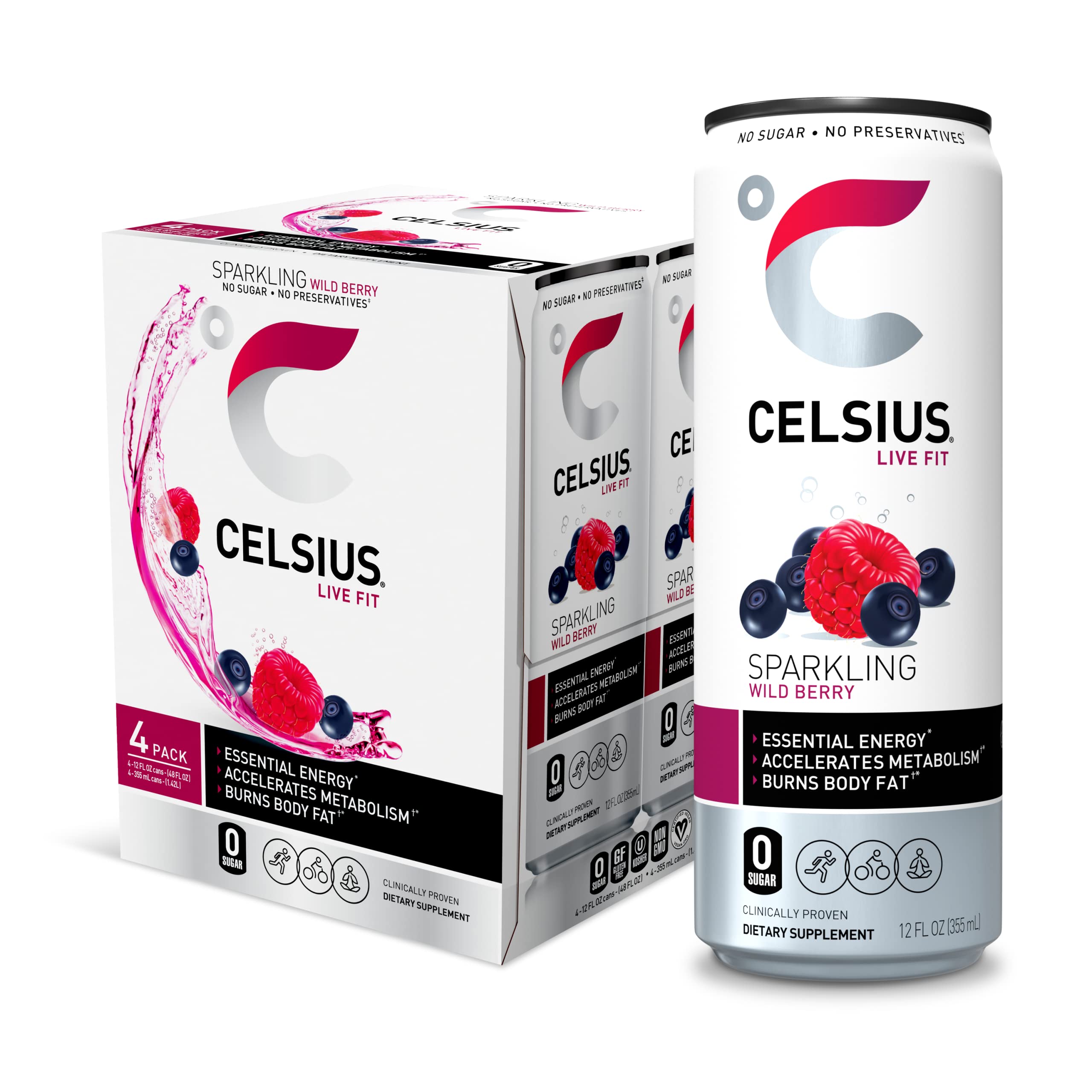 Amazon Com Celsius Essential Energy Drink 12 Fl Oz Sparkling Wild Berry Pack Of 4 Grocery Gourmet Food
